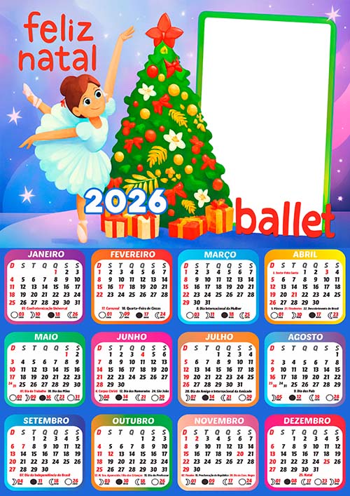 Adquira agora sua Moldura Calendário 2026 Ballet Menina Feliz Natal com feriados e fase da lua e comece hoje mesmo a criar momentos especiais.