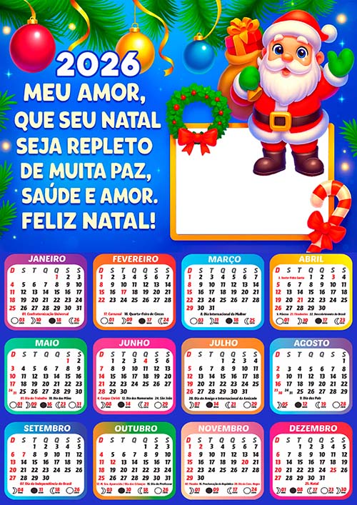 ✅ Arte Digital Calendário 2026 com Feriados – Pronto para Montagem de Foto e Imprimir em Alta Qualidade!
