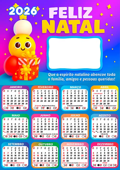 Adquira agora sua Moldura Calendário 2026 Feliz Natal Emoji Boneco Neve com feriados e fase da lua e comece hoje mesmo a criar momentos especiais.