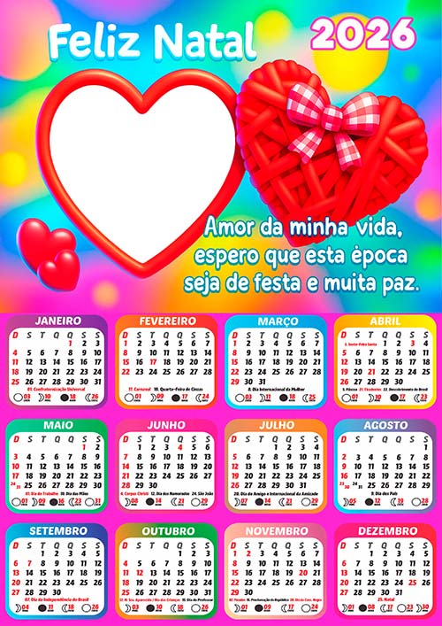 Adquira agora sua Moldura Calendário 2026 Feliz Natal Frase Natalina Coração com feriados e comece hoje mesmo a criar momentos especiais.