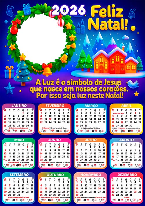 Adquira agora sua Moldura Calendário 2026 Natal de Luz com feriados e fase da lua e comece hoje mesmo a criar momentos especiais.