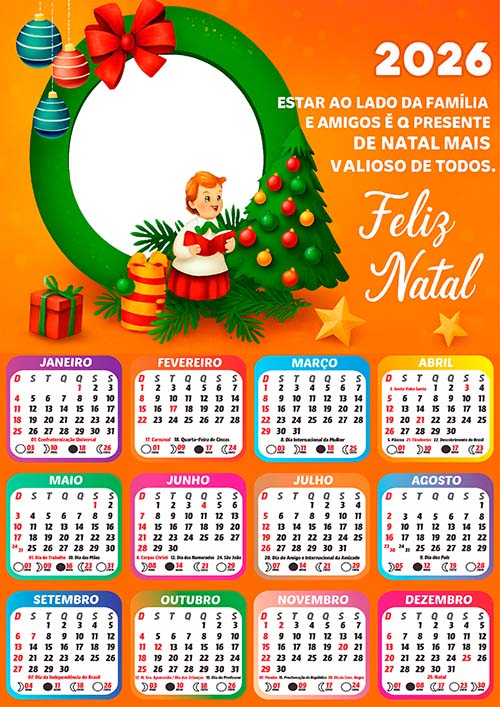 Adquira agora sua Moldura Calendário 2026 Natal Vintage com feriados e fase da lua e comece hoje mesmo a criar momentos especiais.