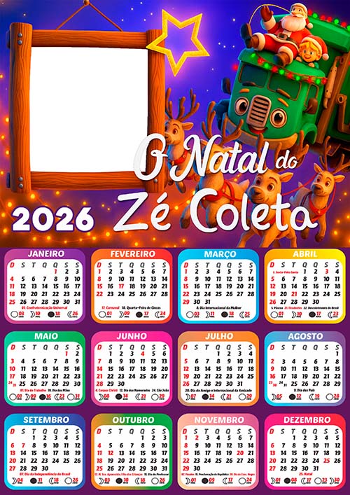 Adquira agora sua Moldura Calendário 2026 Natal Zé Coleta com feriados e fase da lua e comece hoje mesmo a criar momentos especiais.