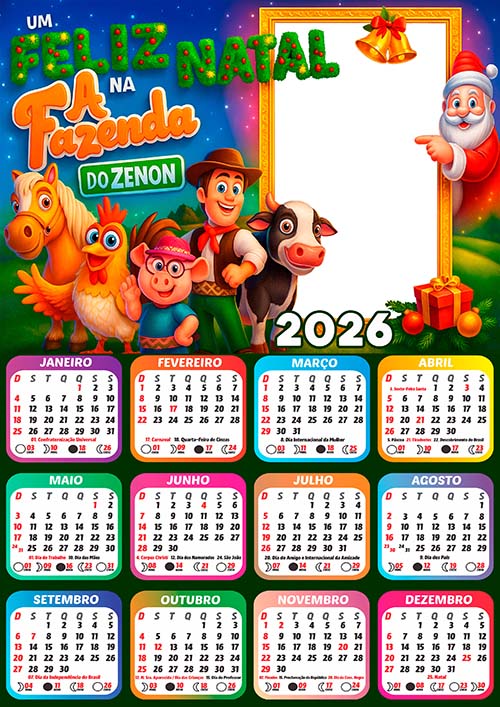 Adquira agora sua Moldura Calendário 2026 Natal Zenon com feriados e fase da lua e comece hoje mesmo a criar momentos especiais.