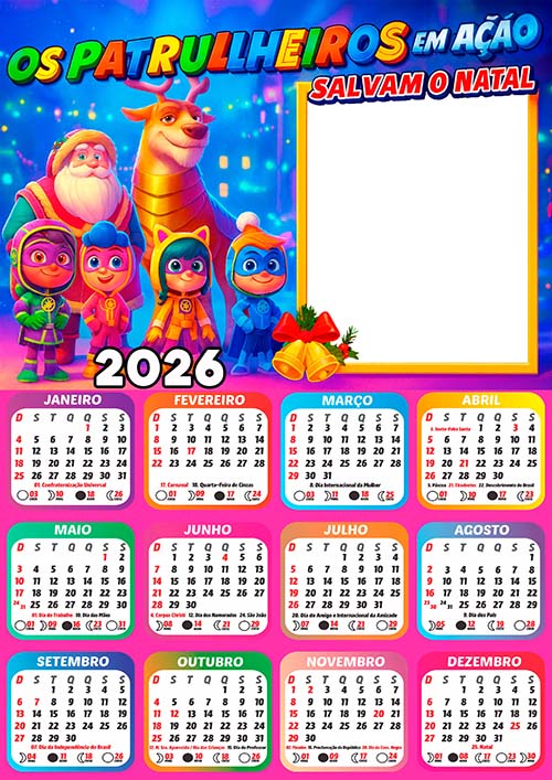 Adquira agora sua Moldura Calendário 2026 Os Patrulheiros Natal com feriados e fase da lua e comece hoje mesmo a criar momentos especiais.