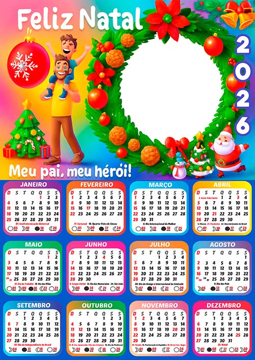 Adquira agora sua Moldura Calendário 2026 Papai Feliz Natal com feriados e fase da lua e comece hoje mesmo a criar momentos especiais.