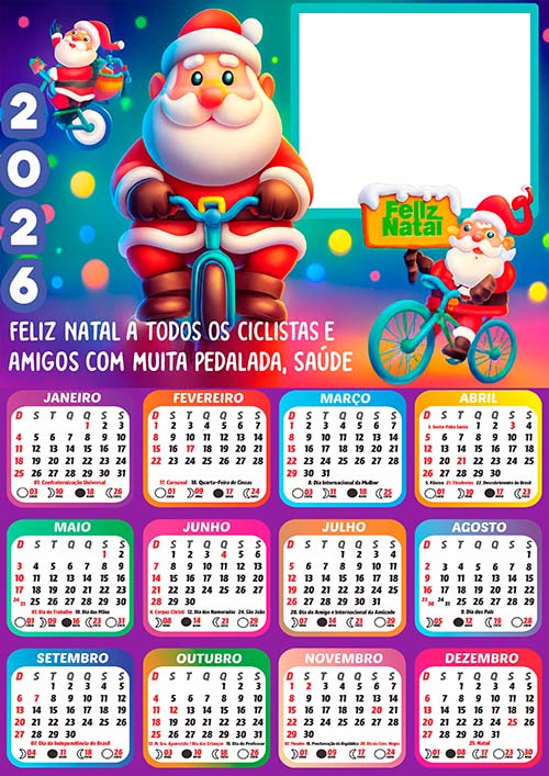 Adquira agora sua Moldura Calendário 2026 Papai Noel Bike com feriados e fase da lua e comece hoje mesmo a criar momentos especiais.