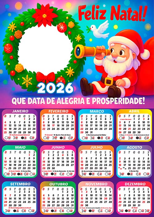 Adquira agora sua Moldura Calendário 2026 Papai Noel Cute com feriados e fase da lua e comece hoje mesmo a criar momentos especiais.