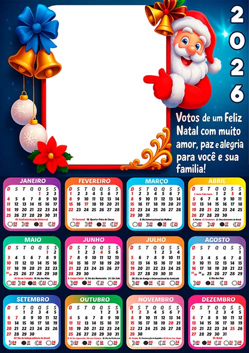 Calendário 2026 Papai Noel Feliz Foto Moldura Arte Digital