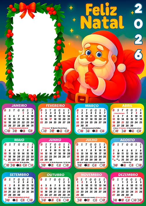 Calendário 2026 Papai Noel PNG para Foto Arte Digital