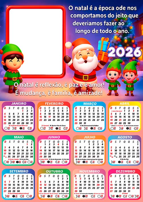 Adquira agora sua Moldura Calendário 2026 Reflexão Natal Frase com feriados e fase da lua e comece hoje mesmo a criar momentos especiais.