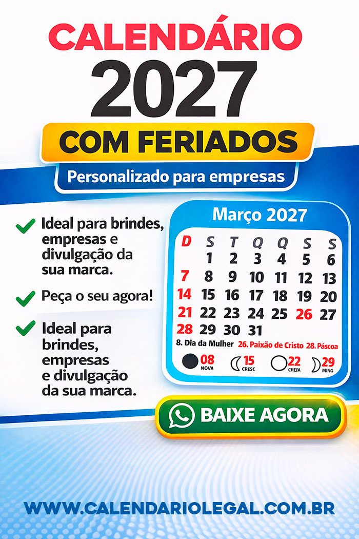 O calendário já acompanha feriados nacionais de 2027, facilitando sua rotina e agilizando suas entregas.